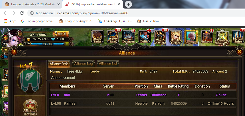 Why name in alliance from Aalladin become Null.. pls fix this..