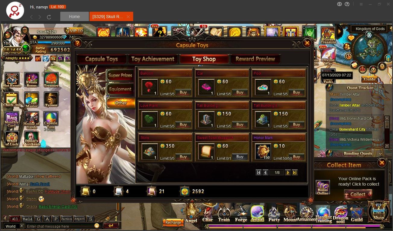 Check out two screenshots below, two characters on the same server, one with items for sweet town blueprint (and only 3 tabs) and one with items for thanksgiving day blueprint (and 5 tabs). Please fix this issue quickly. I need to get that sweet town blueprint. Thank you.
