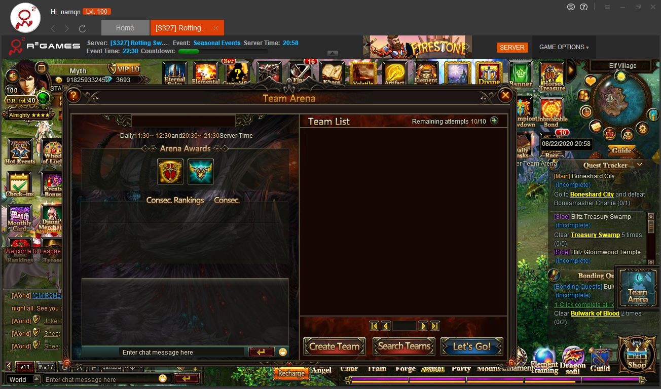 Hello, last update for TA is that it's been fixed already. Can you please come with a confirmation it is so (even if it is not yet TA time, you can enter Arena, check TA if it pens and it has the grid/spots for making the team). Thank you.REQUIRED INFO: Don't forget to provide your IGN, server name & number and screenshots for the issues & problems experienced. Recharge issues will require your transaction ID. Screenshots provided must be uncropped and timestamped.