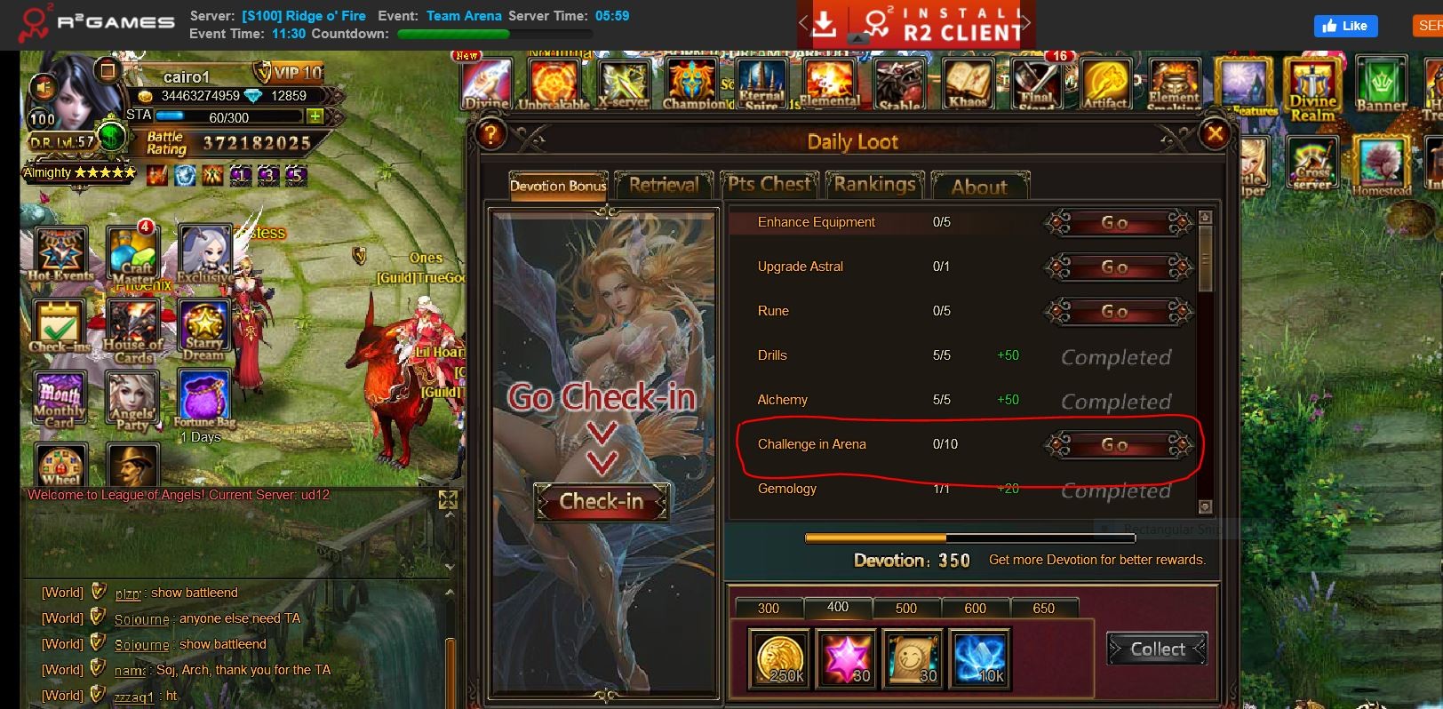 Well, game won't work properly on browser anymore, that is why there is the option with client for playing loa1 (check these links: https://forum.r2games.com/forum/new-...un-in-r2games; https://forum.r2games.com/forum/real...-account-login).