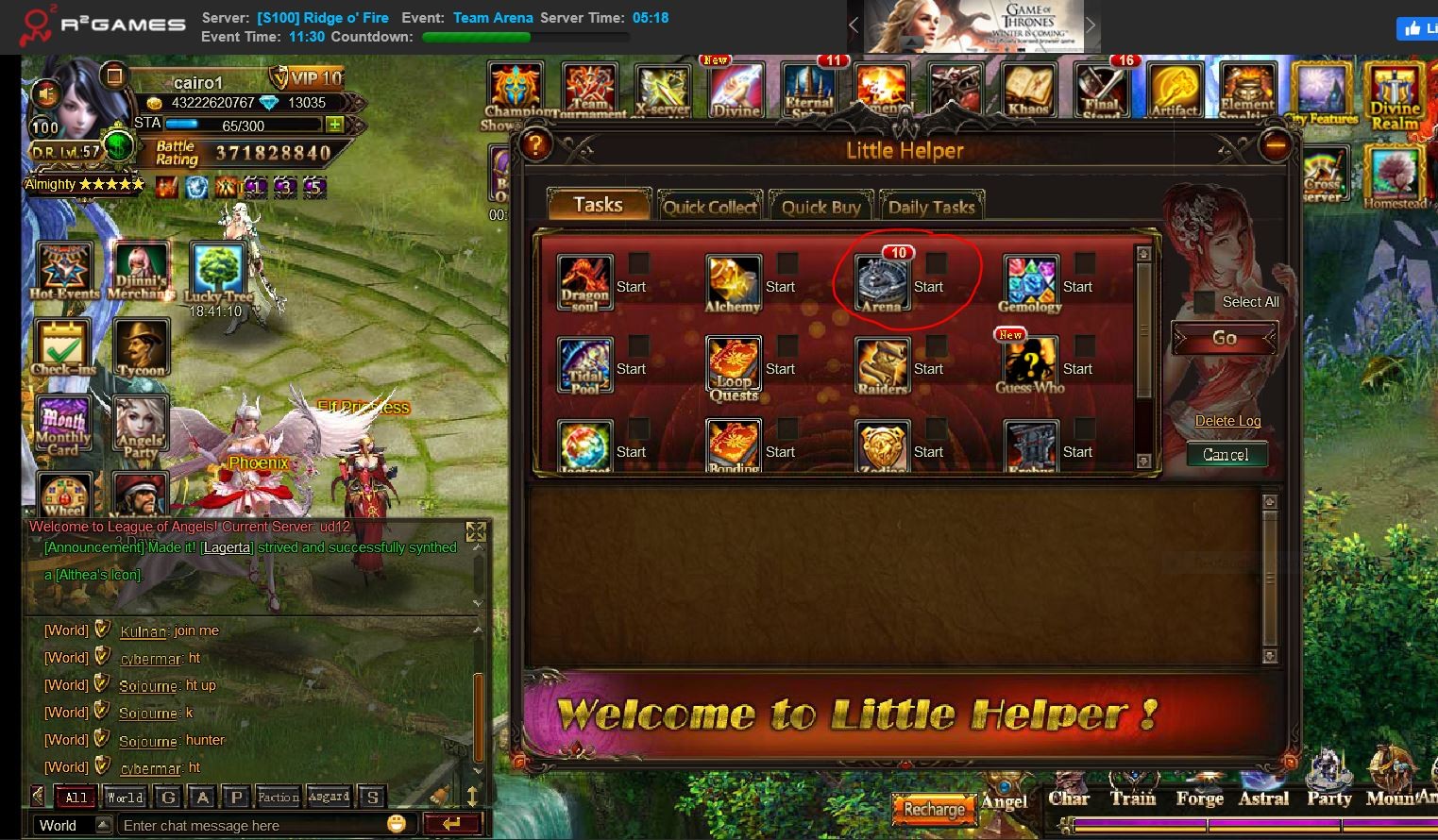 Hello again. Can you try that Arena again and take some screenshots which to post here after that? Thank you.REQUIRED INFO: Don't forget to provide your IGN, server name & number and screenshots for the issues & problems experienced. Recharge issues will require your transaction ID. Screenshots provided must be uncropped and timestamped.