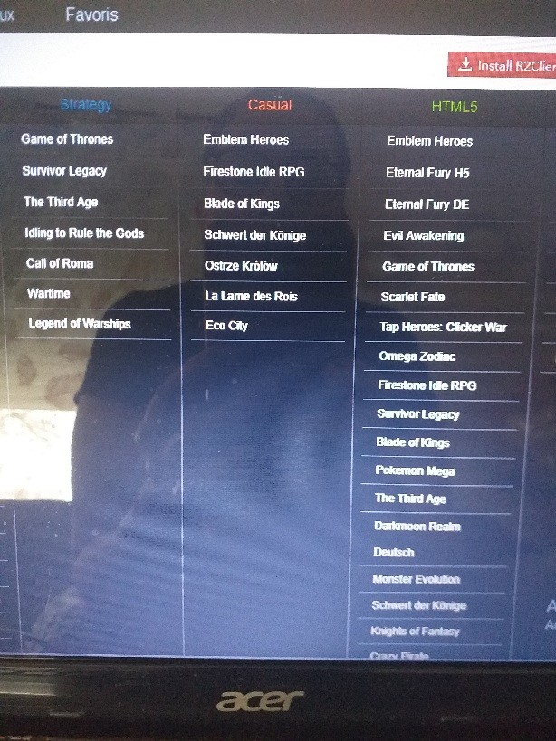 Re voilà ce que j ai je n ai pas All the Games pour trouver League Of Angels il me suffit de cliquer que le 1et jeu et là j ai Dernier jeu lancé mon soucis d ame de dragons n es pas résolu je n arrive pas à le mettre dans petit assistant mais bon j ai pas envie de perdre mon compte à cause de mauvaises manipulations. Je vous remercie MemoryLane pour toute votre aide. J esssaye de vois envoyer une photo mais je n y arrive pas...pièce trop lourde.