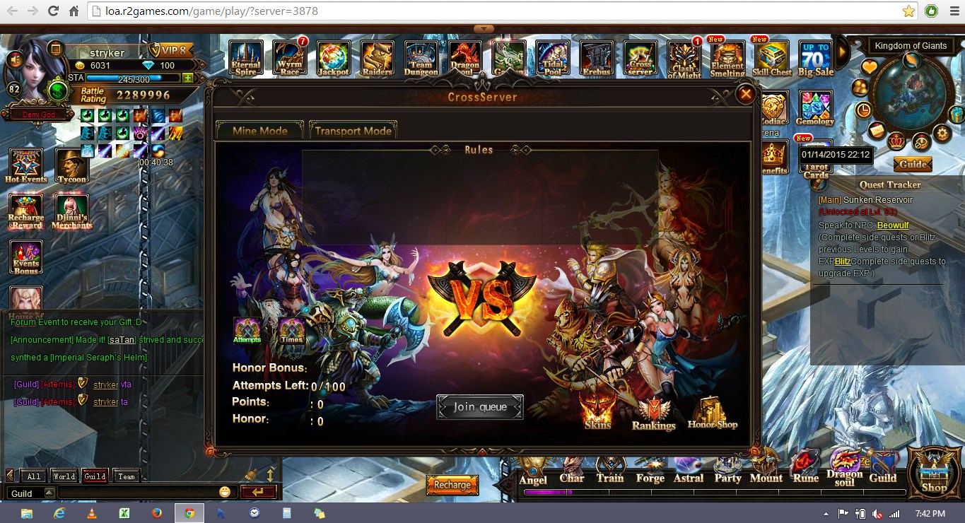 can not get into cross server gets to go in and then stops and freezes up server no. s225 shadow downs league