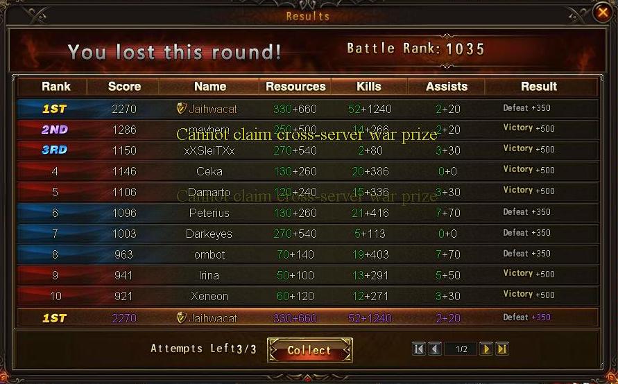 same to me i got attacked by same person 1 second after i closed the brief battle in witch i killed him no way he could respawn and be on middle crystal in just 3 secondsOriginally posted by damlucky27 View PostHello why i cant collect the cross server reward,