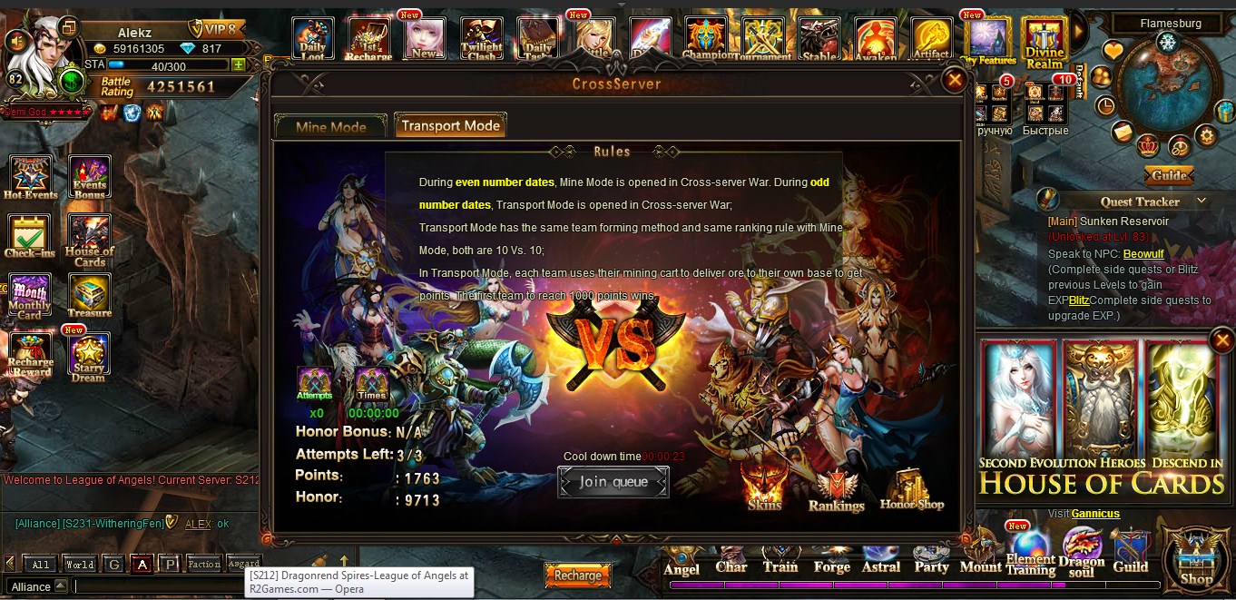i still can't get cross server to go past the queing screen, runs 30 mins then stalls then back to 30 min queing , i have never even gotten past this screen so much as 1 time , been playing the game 2 weeks , lvl 54 with over 850k br , would hate to stop spending and playing because i can not advance from lack of the prizes in cross server that help to advance heros , please fix this , i would love to try this part of the game at least ONCE... server S13 valkeries call , my name is