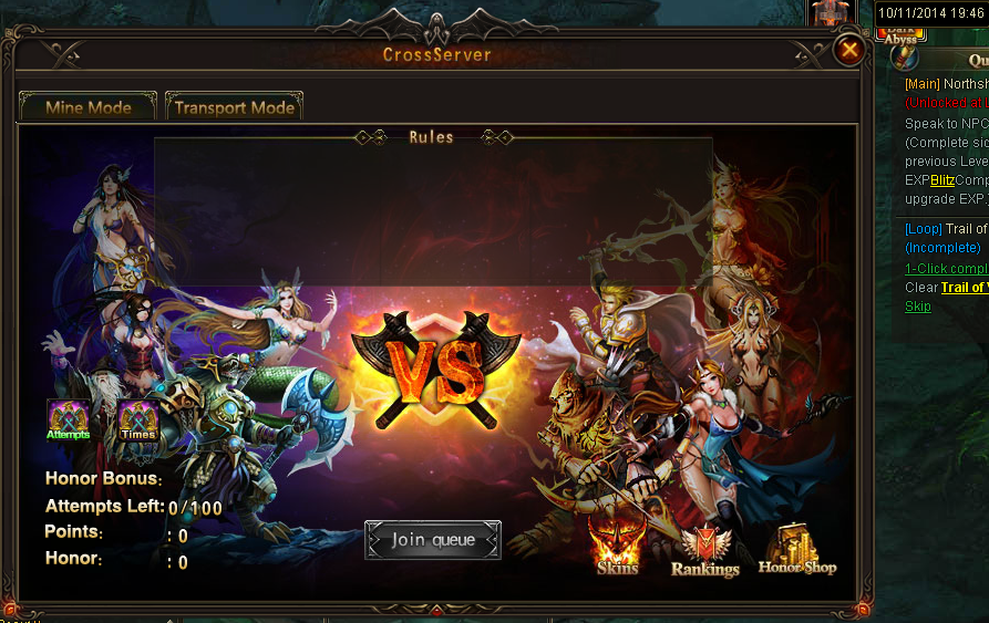 In server S89 Woodway Heights we can't join in Cross Server for a few days. It is very important because Godless Wolf have started. And one of the requirements is to play it 3 times. When you open Cross servers there's nothing there. Neither the numbers (points, honor, attempts) nor the information it is empty. And join button is gray, you can not click him. One more thing there is still no House of cards event.Last edited by R213098799; 10-10-2014, 06:05 PM.