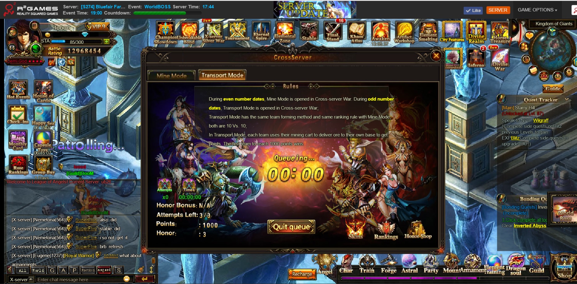 • I would report a bug if I only could get in there, in S338 we been in que forever, we just can not get in there. And in events there is things to get if one do CS, so plz let us at least get in there.