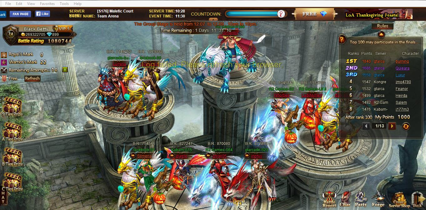 Come one guys, everything went wrong after last server merge (ua32 (S138 and S140) and S135). First of all NO beach treasure event, NO team arena for 3 days after merge, now Cross server tournament NOT WORKING. AND NO COMPENSATIONS