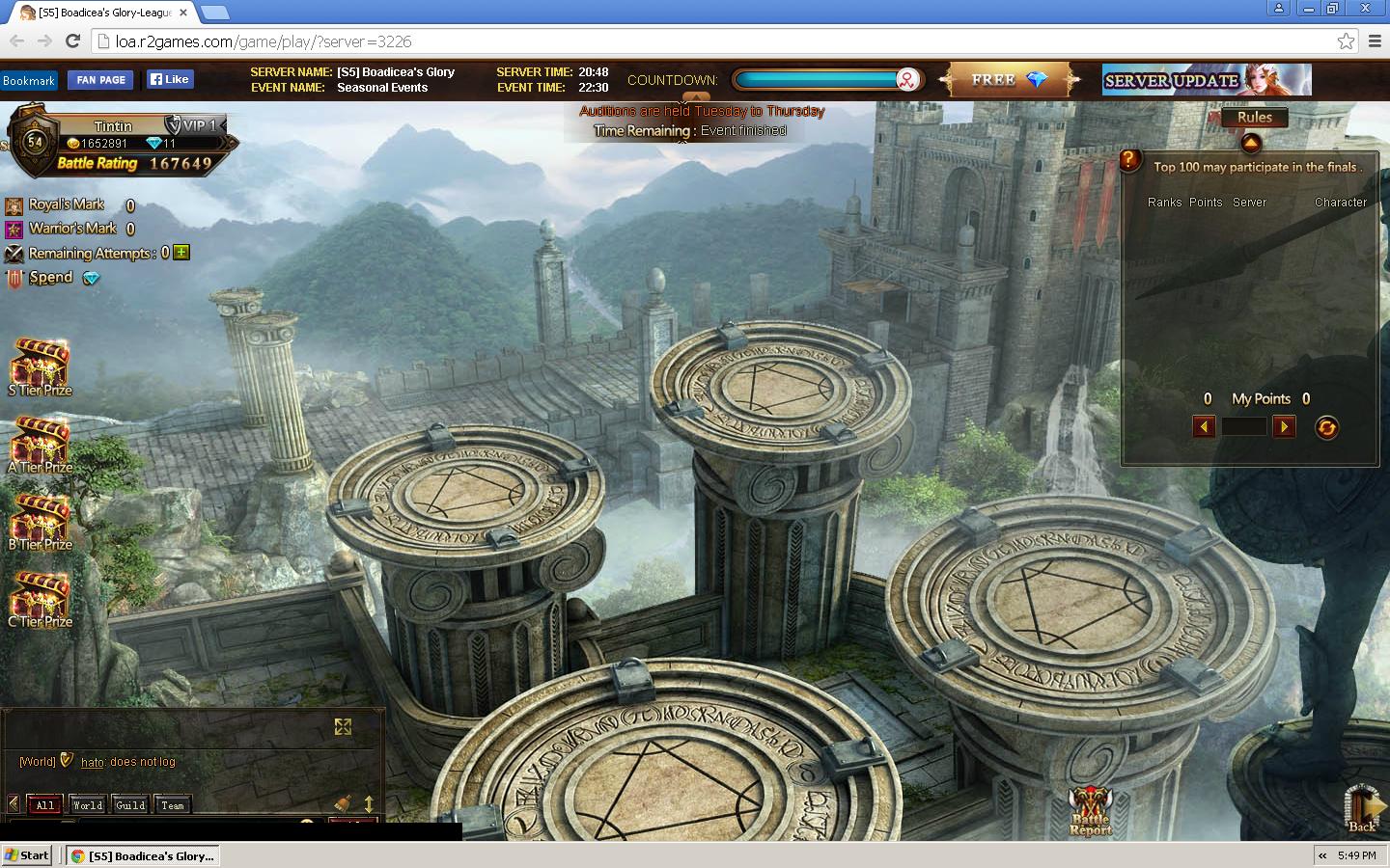 S194. Two people on my server so far have no one to attack, chests on the left are flashing and the top says the Tuesday to Thursday thing. His alt however is able to fight no problem. Again S194, Dfpfool and Aragorn.