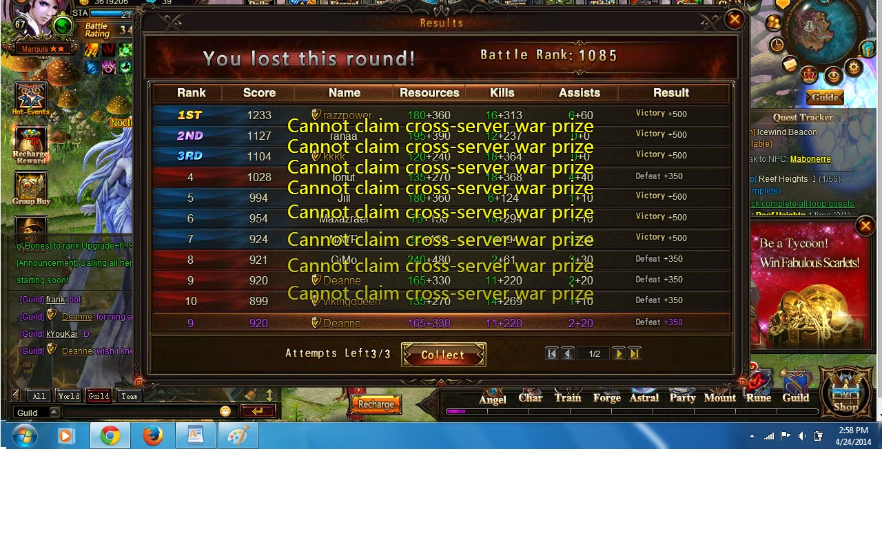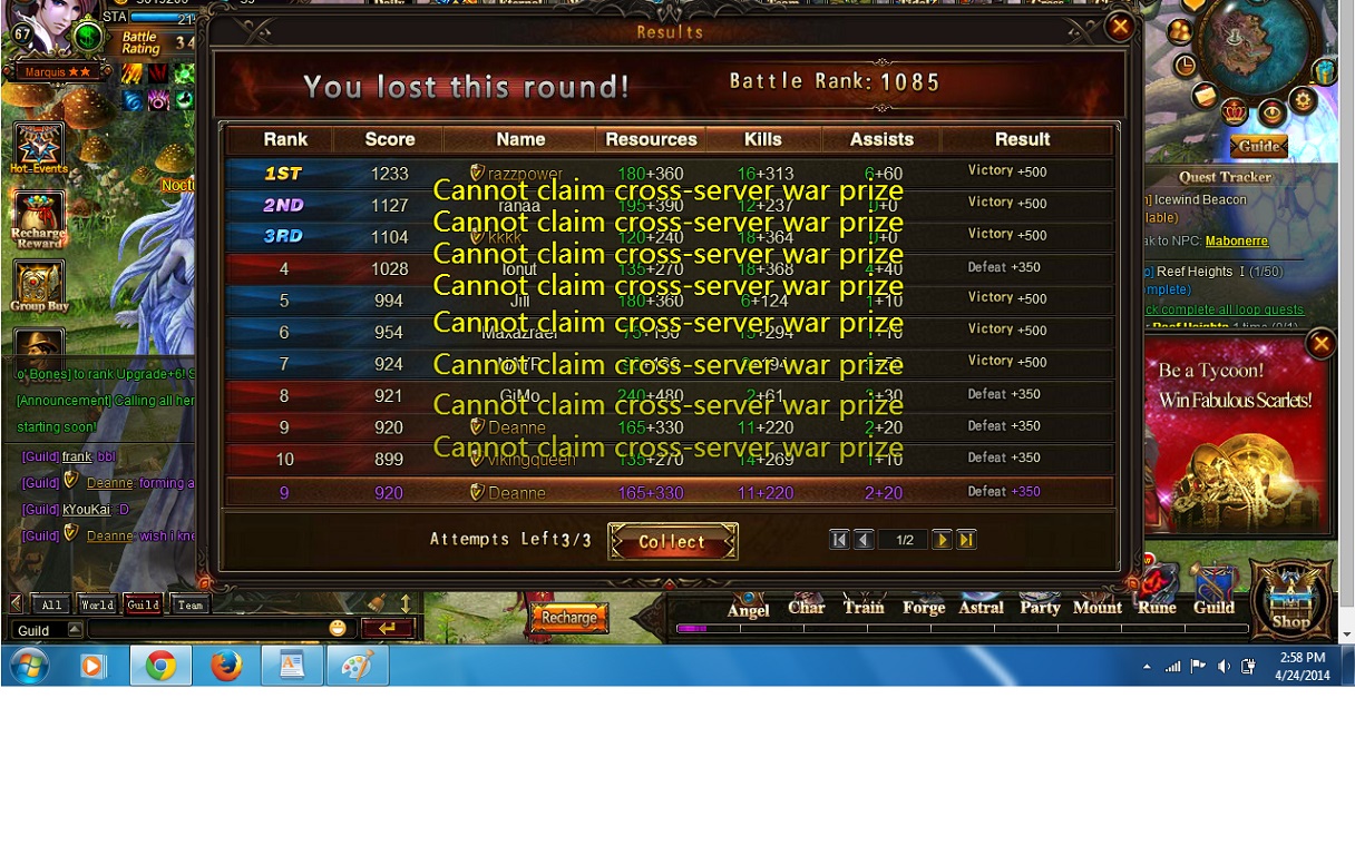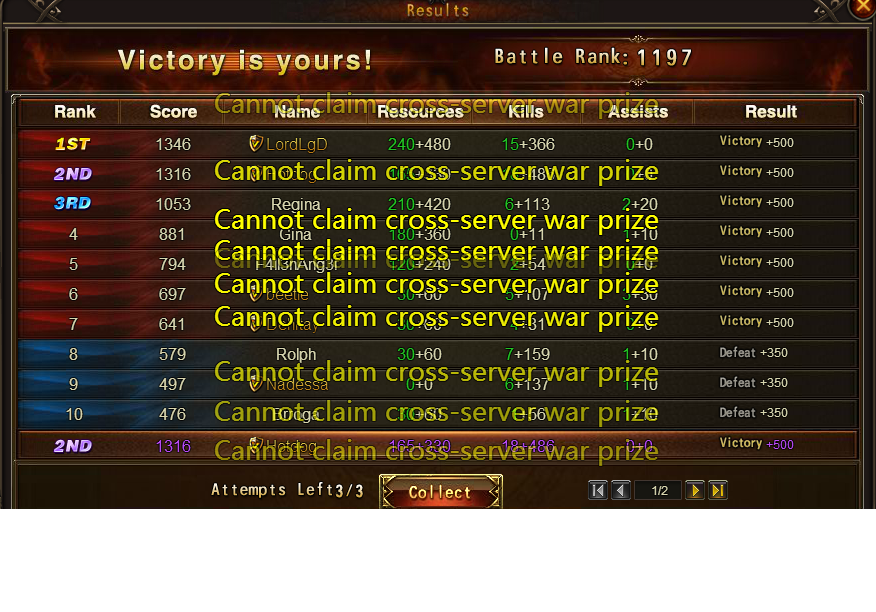 Here are my new screenshots of the S174 copper coast CrossServer war Bug