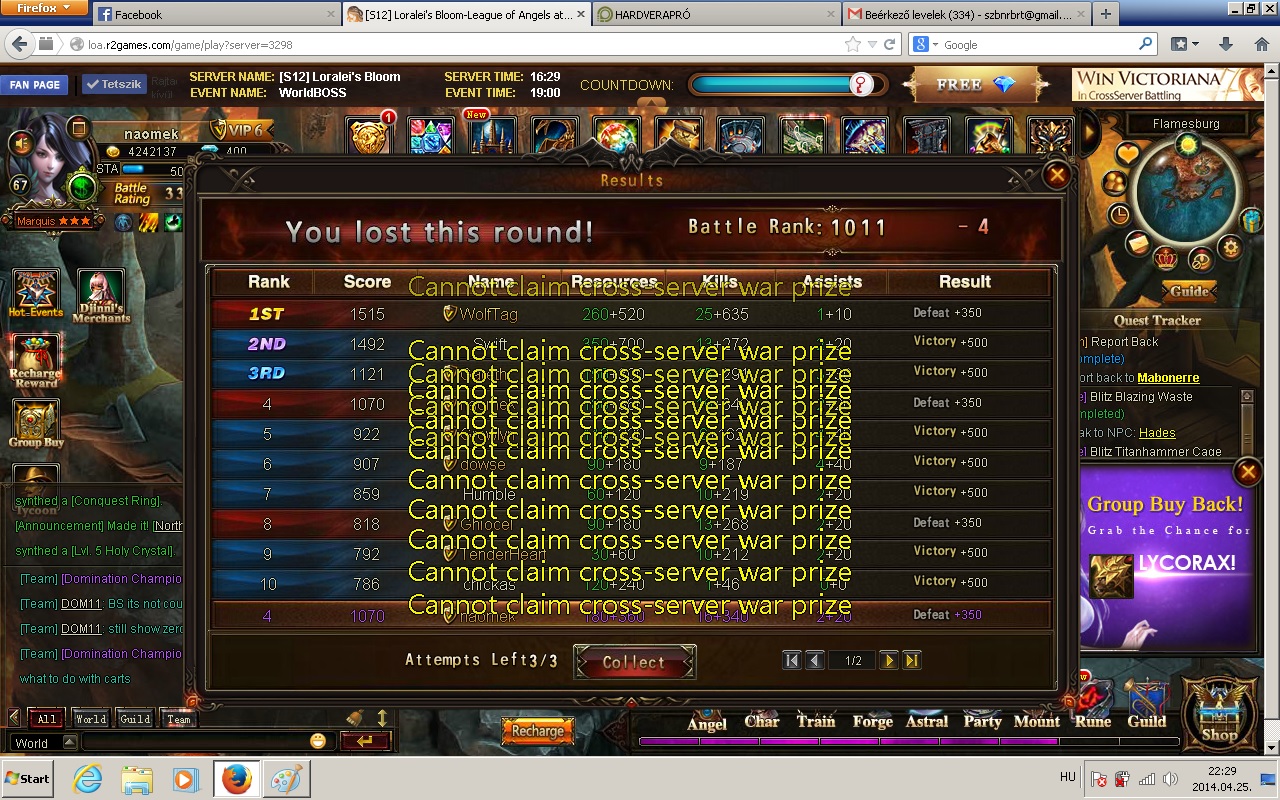 Then? it's unfair for those servers whose is not working. right? Compensation? i think is a joke. With those events going on can we use honor points for it? Answer:No!