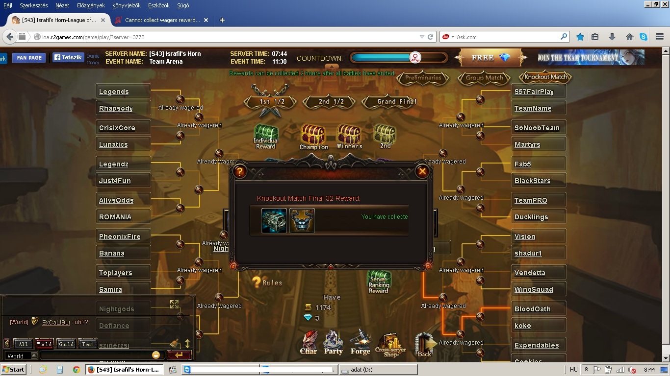 Cannot collect wagers rewards from team tournament