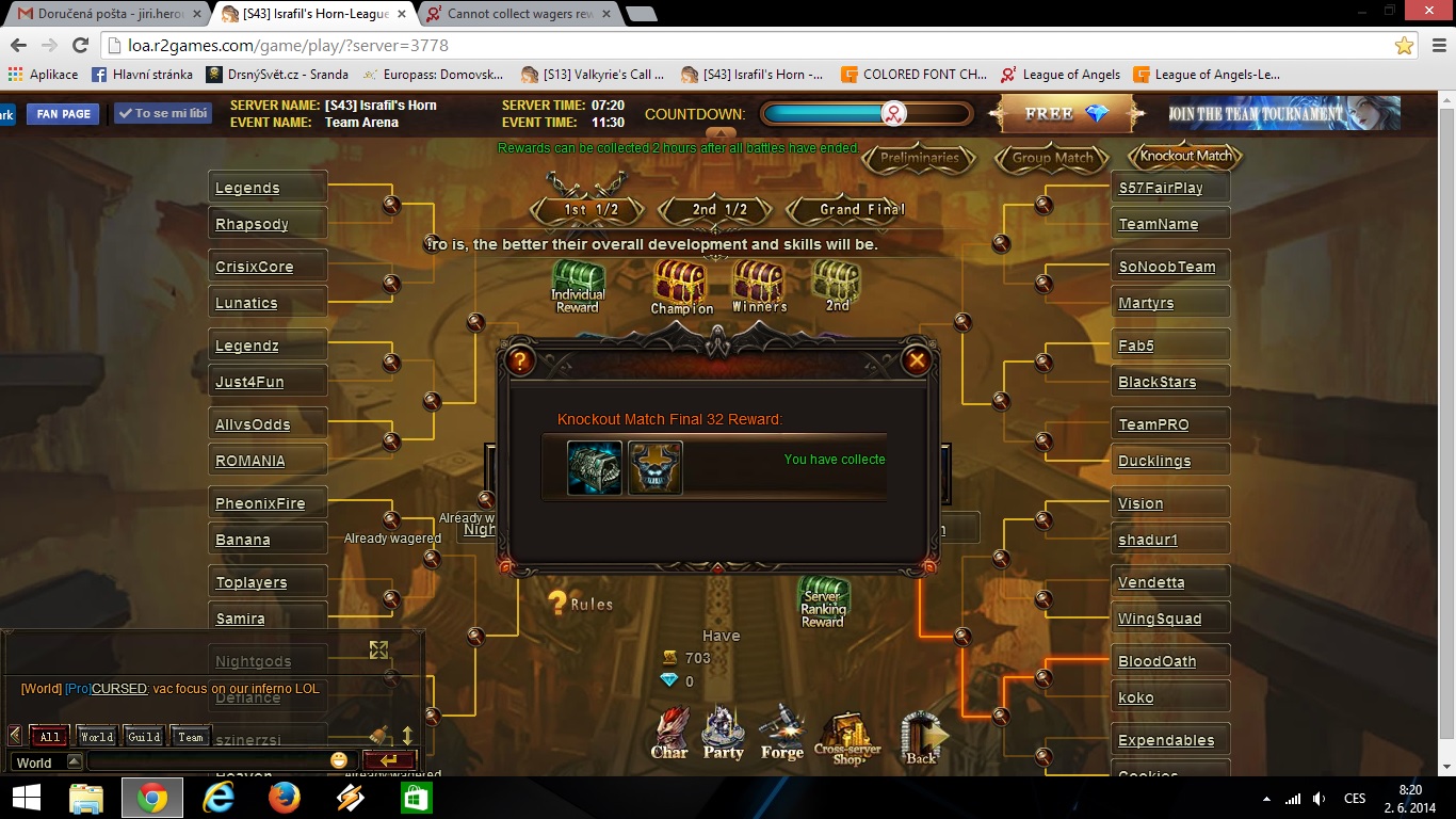 Cannot collect wagers rewards from team tournament