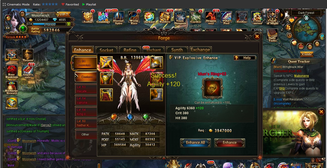 Also see what happenes when I enhance the Idun's ring - the agility goes up , NOT Hit/Crit