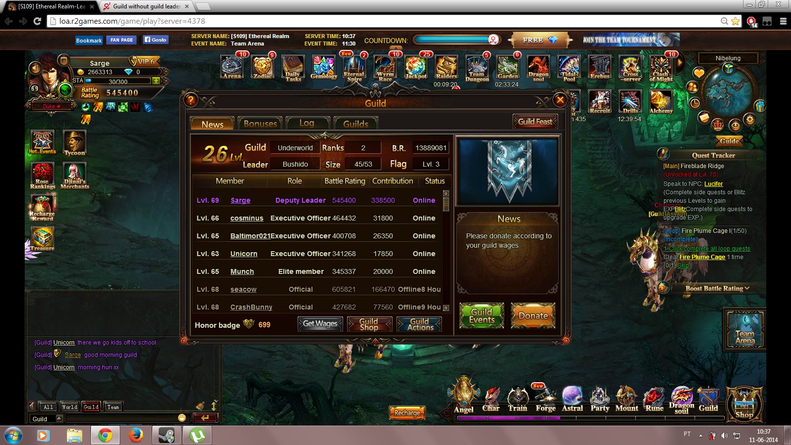 Good morning, i'm sarge from s109, and i'm reporting a bug where our guild Underworld was left without a guild leader due to a possible bug? Our previous guild leader promoted a deputy leader to guild leader before she left, and that one deputy leader she promoted left after he was promoted without promoting anyone, so, the guild was left without a guild leader and a deputy leader and no way to restore those spots. We would appreciate if you look into this.