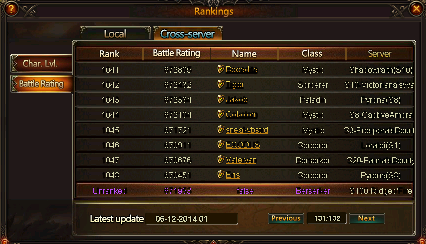 Cross Server Rankings Bug?