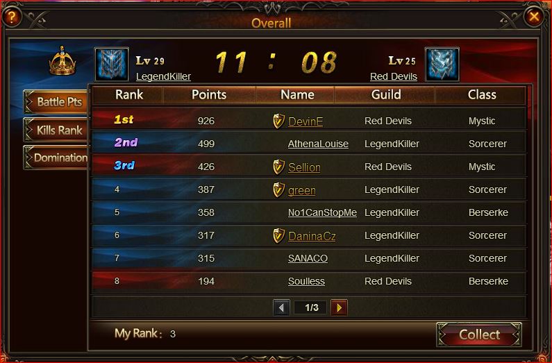 . We cannot capture the mid flag and on top of the flag written 6/11 flag left, while the result already 11:08 as on the screenshot. The event also ended longer than normal. In addition please do something about the “false†member in guild list and also in some of the game ranking. Thank you