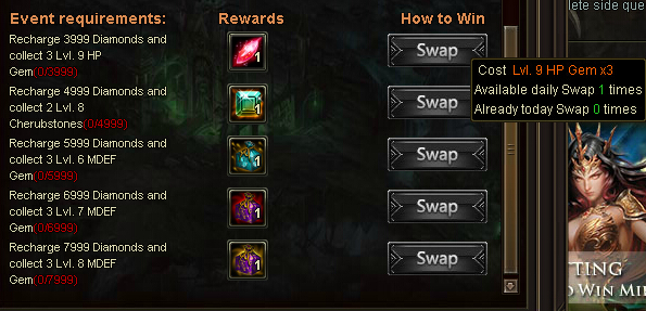 As you can see swap buttons are shining and it means i can swap( but did not received gems and cherubs etc needed for swapping).. pls help me. thanks!