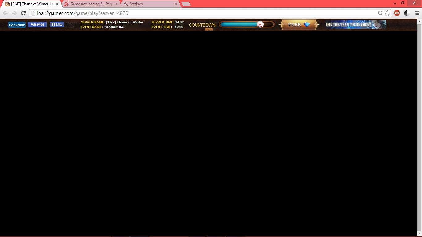 Was working upto 15 mins before world boss then just stopped and unable to load since.