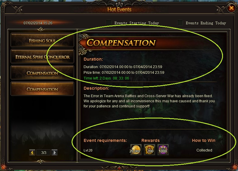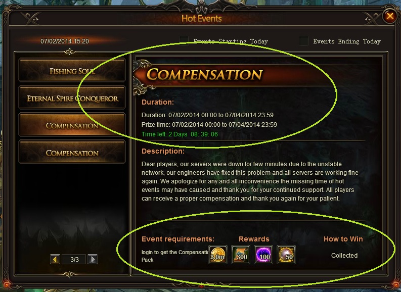 Some players may be suffering an excessive lag or can't login to the server due to some technical problems, . Our technicians are working hard to fix it. We will compensate all the servers with a compensation pack . We apologize for the inconvenience caused and thanks to all for the understanding.