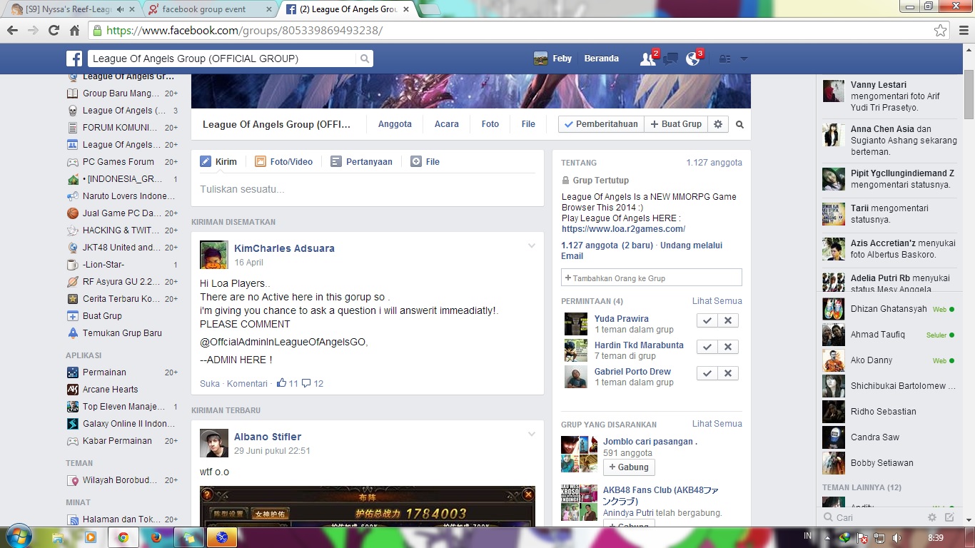 Our page. https://www.facebook.com/LeagueOfAngels.R2 The other page is not US and we are not liable for anything on it.File a ticket