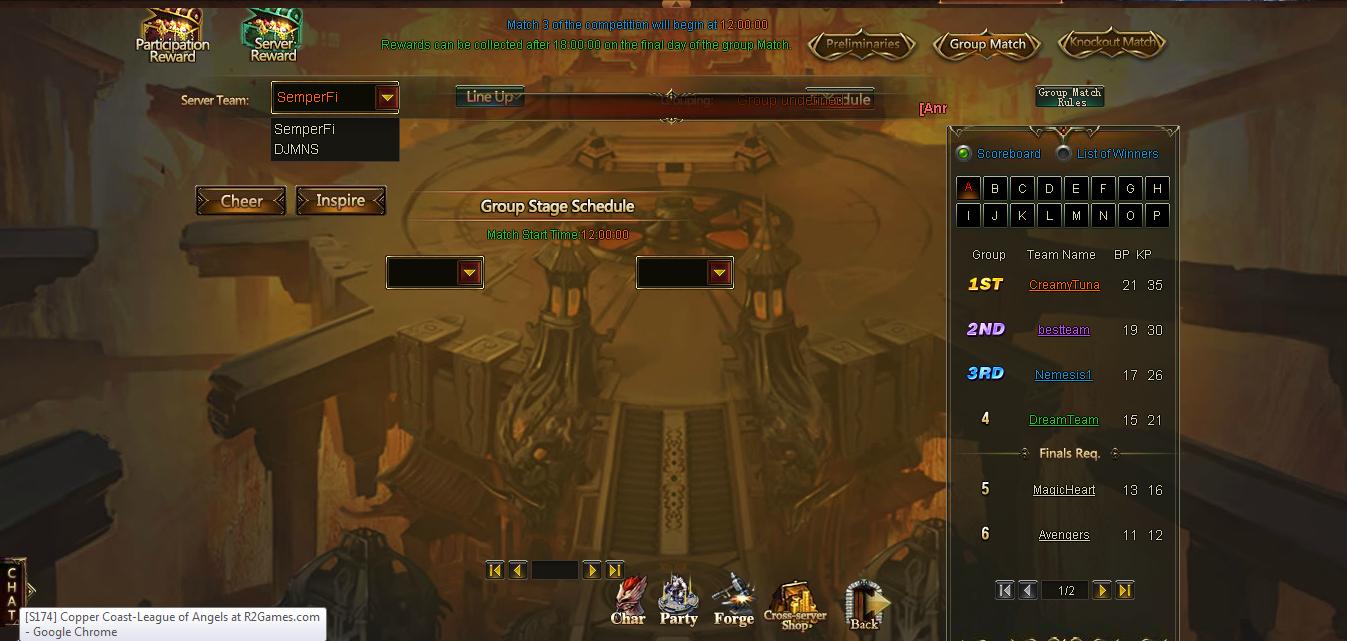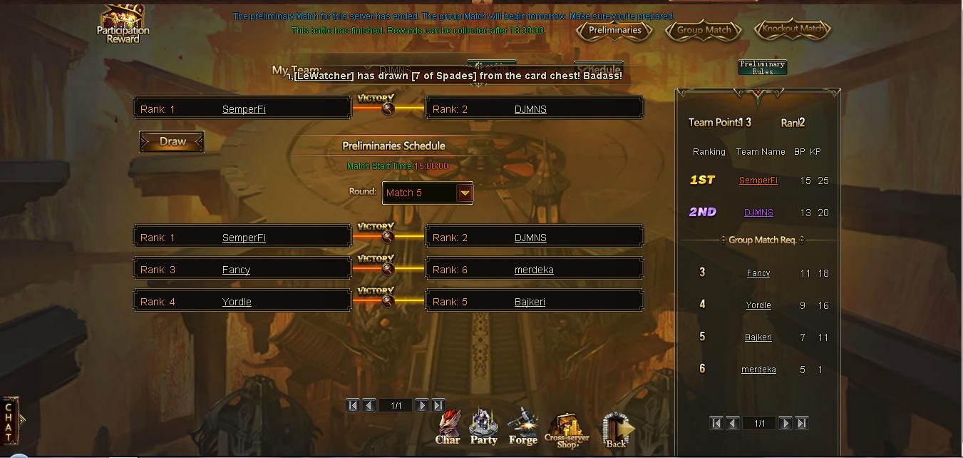 1st is the server tournament selection with 1st team SemperFi and 2nd team DJMNS