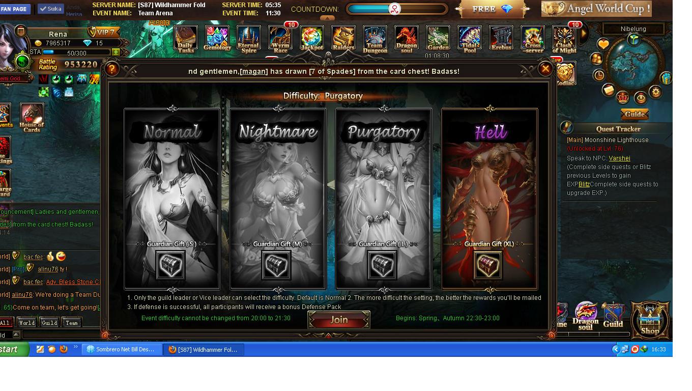 is it a bug from the effect after maintenance or is it just on my server (s87)... actually i'm choosing purgatory for gauntlet, but after going in there is hell mode that i'm doing.