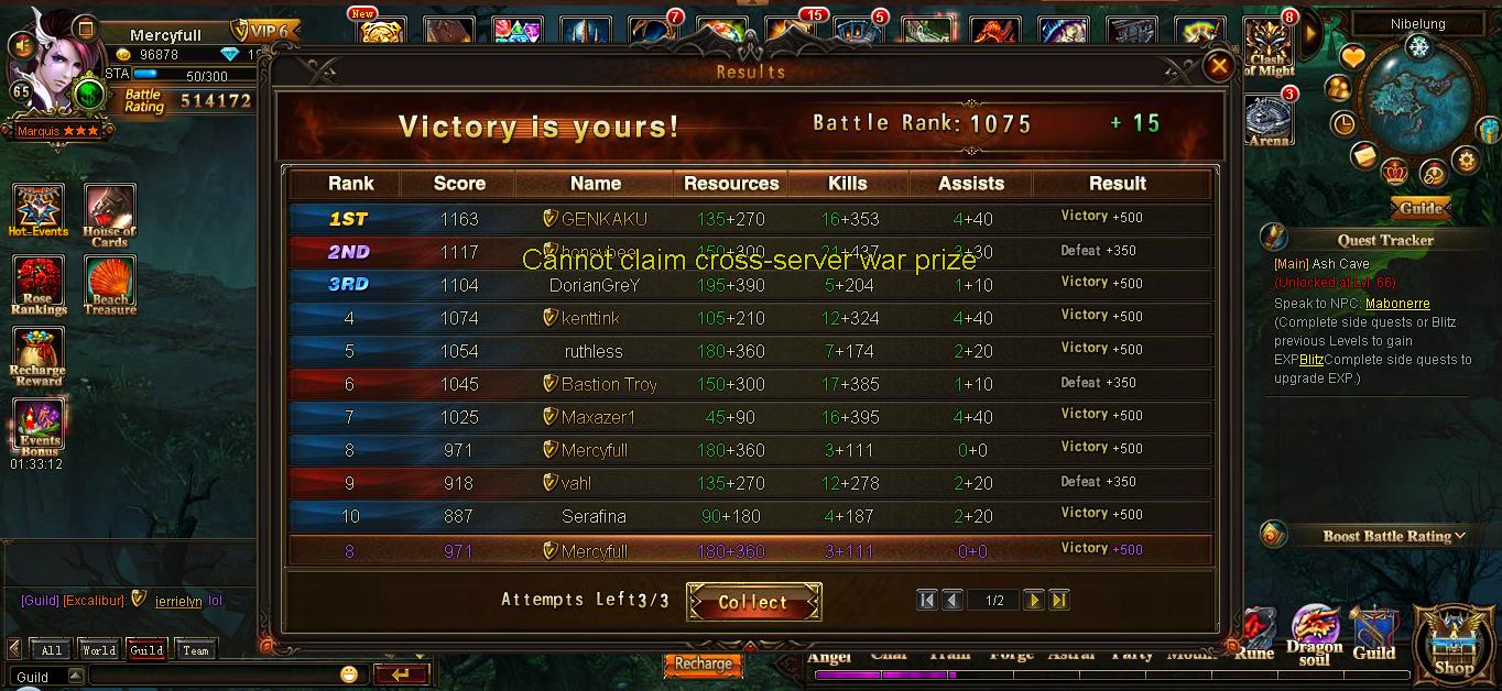 Here are my new screenshots of the s174 copper coast Team Arena and CrossServer war Bug