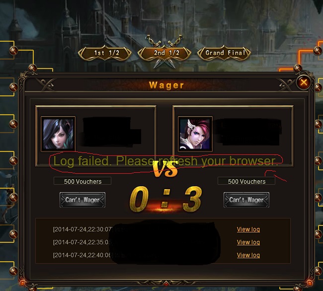 some days now when tyccoon started,i cannot watch any of my battle logs or domination logs..keep taking a ''Log failed,pleash refresh your browser'' message...dunno what it is but check it and fix it ASAP plz!