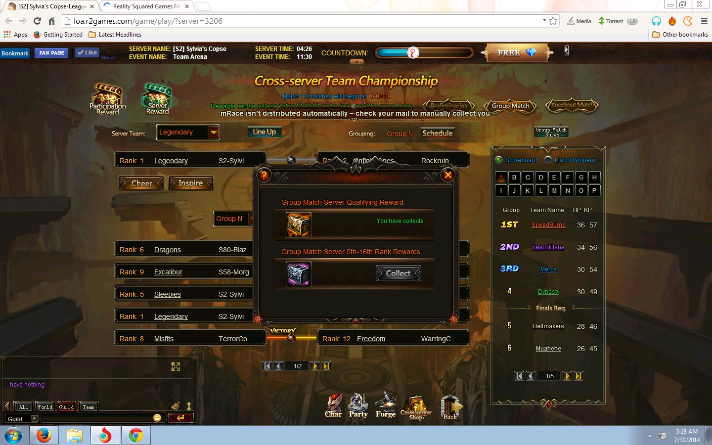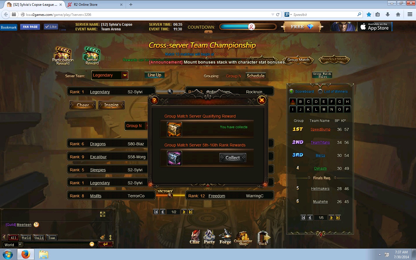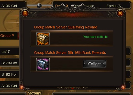 GM . . . I did not collect any group match server qualifying reward. there is nothing on my mailbox. On the Server reward chest says it is already collected.