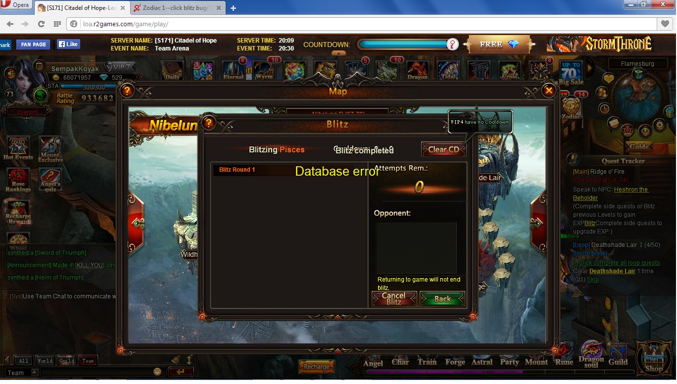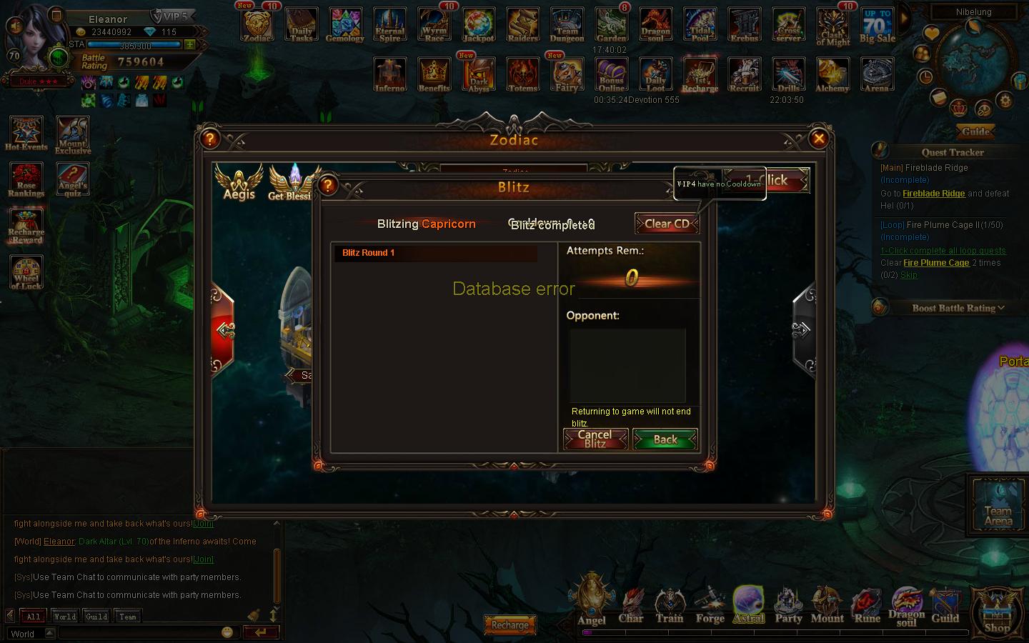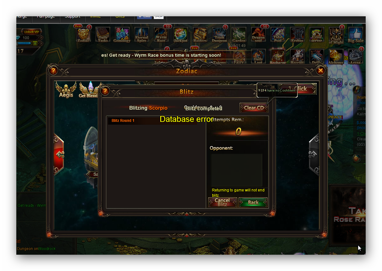 Zodiac 1--click blitz bug/ Database Error