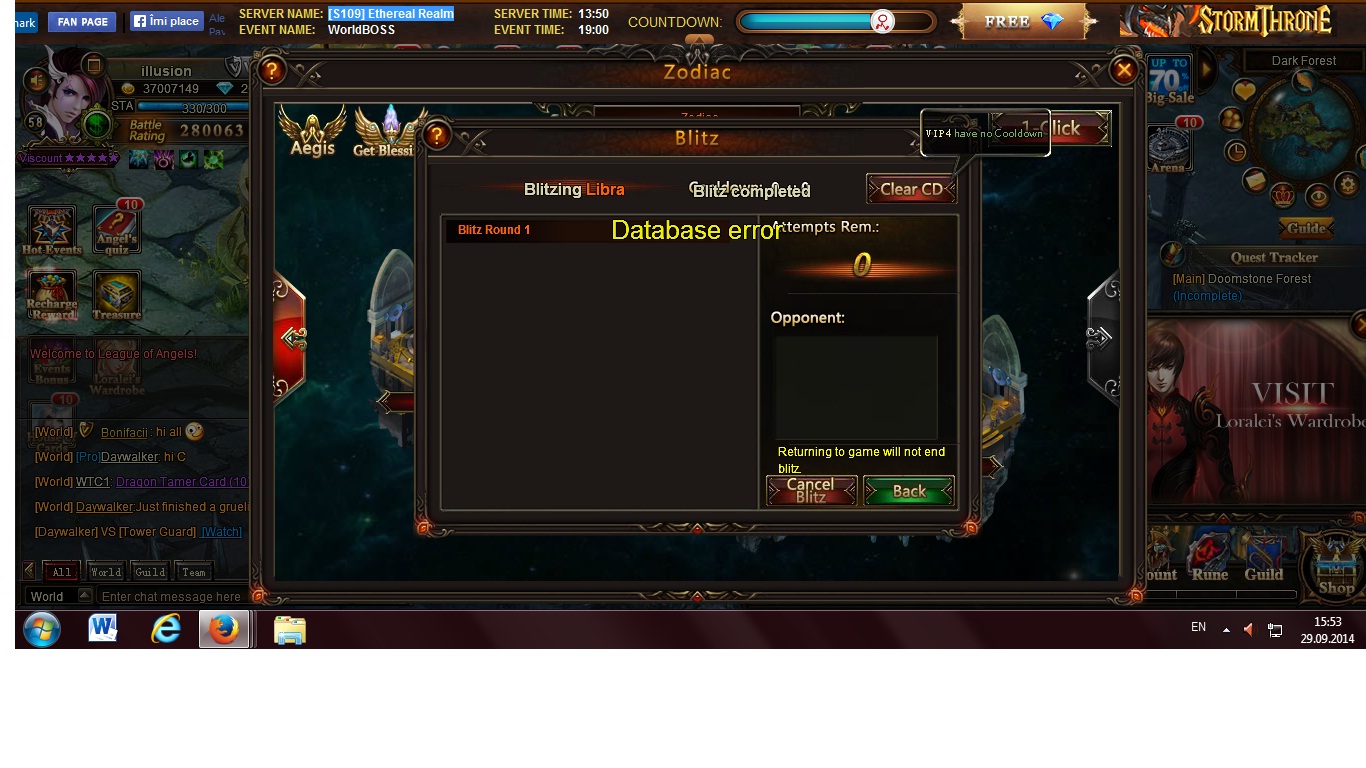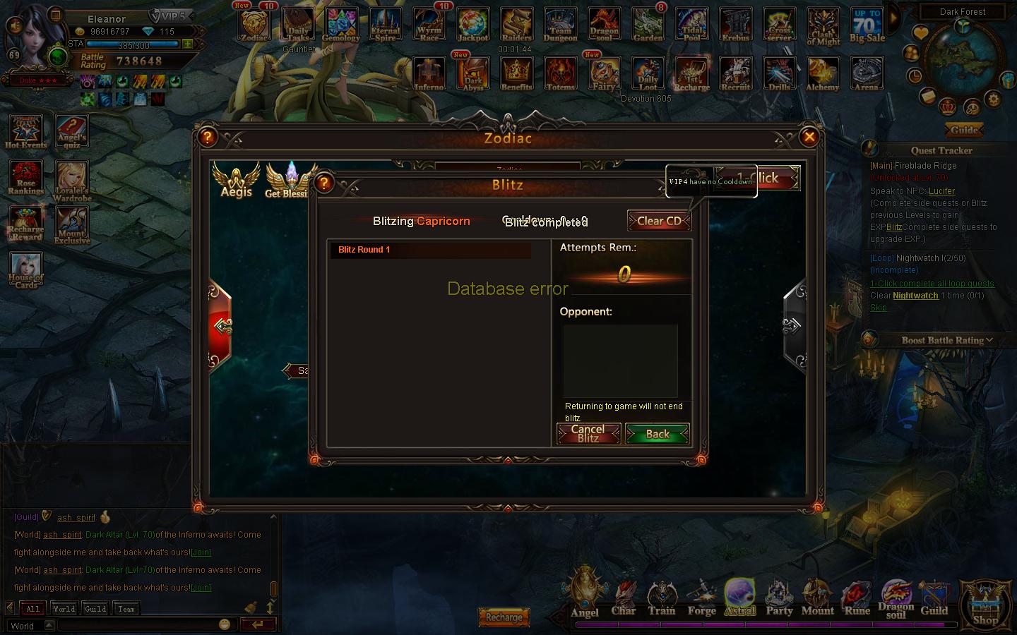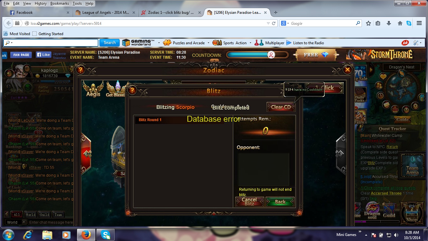 Zodiac 1--click blitz bug/ Database Error