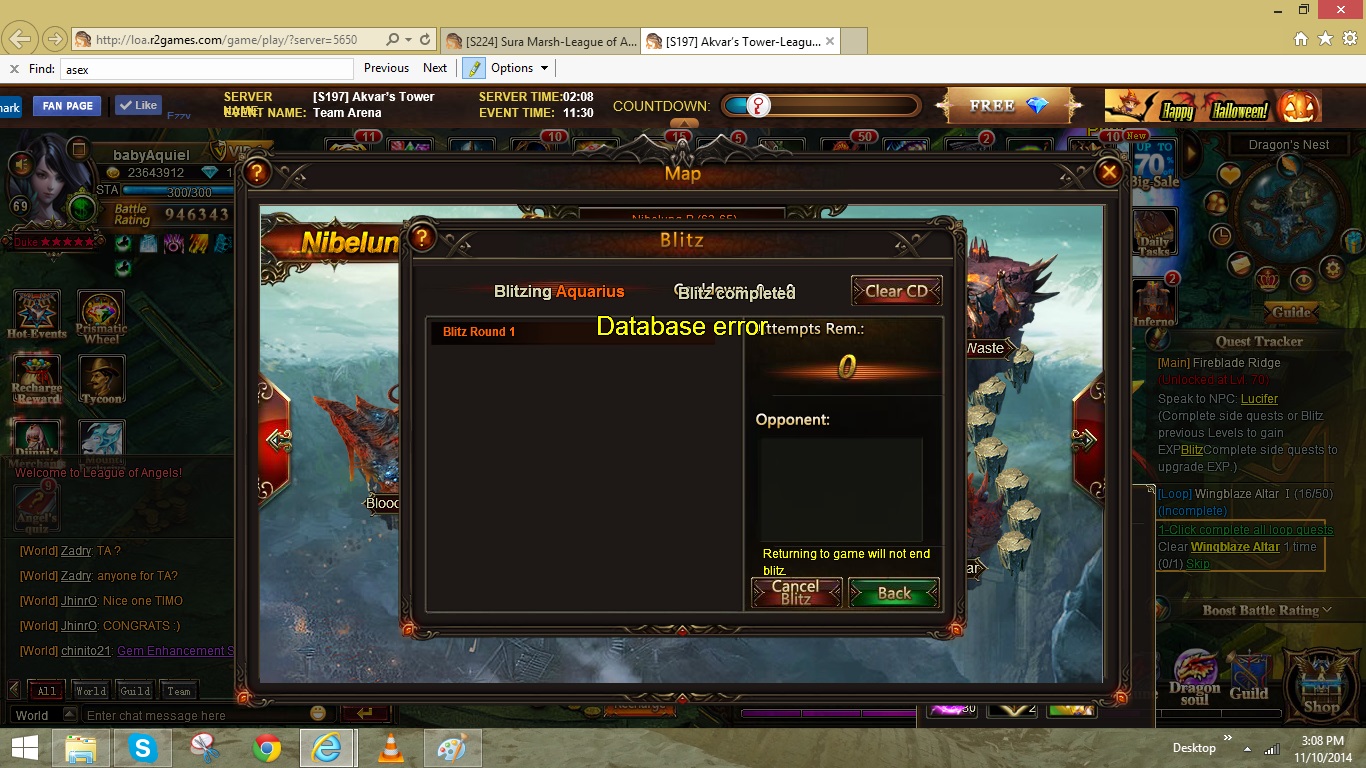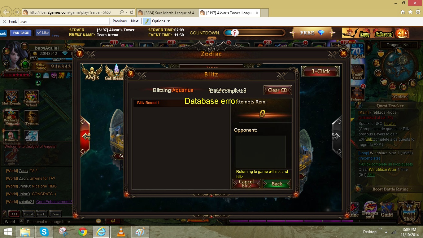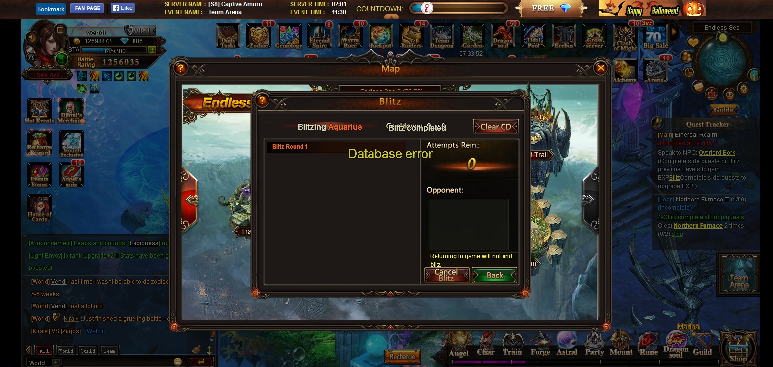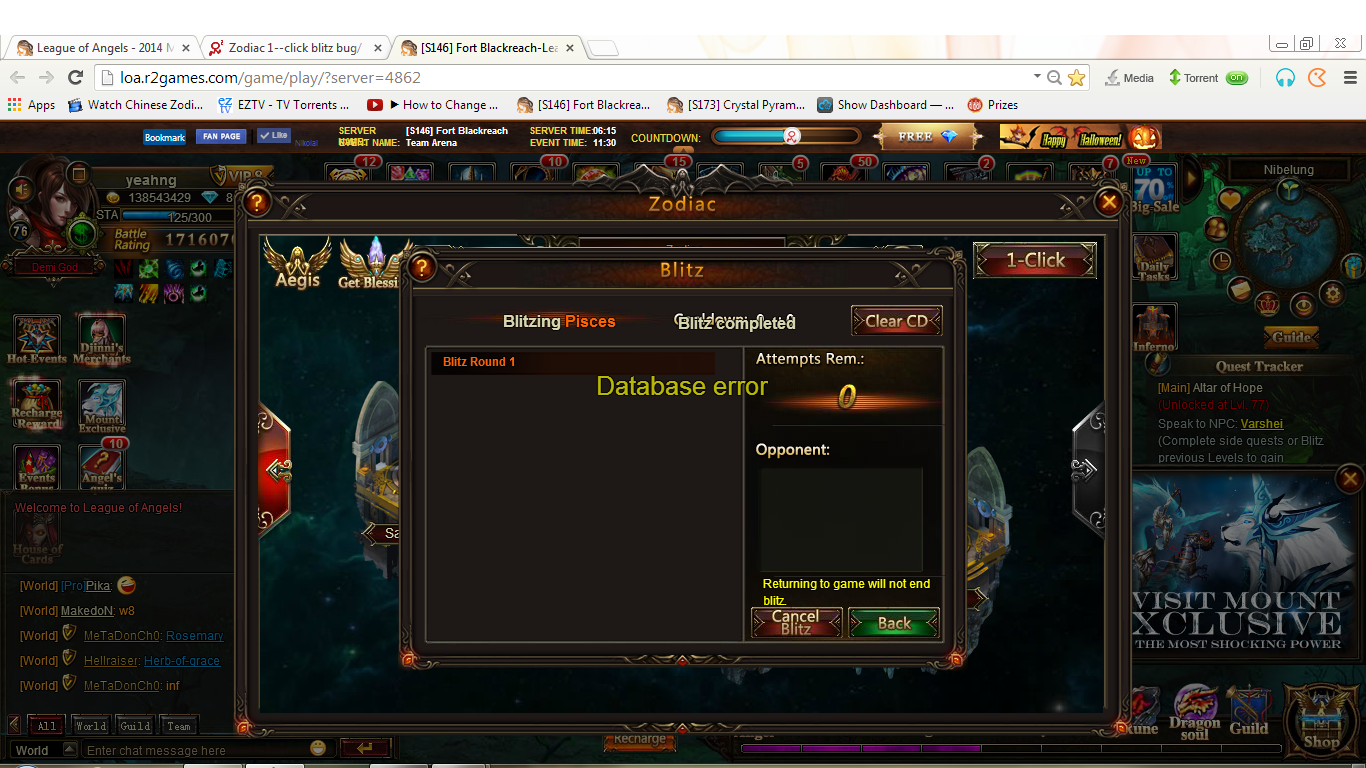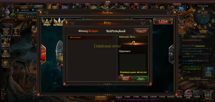• have a problem with zodiac blitz: "database error", can't do loop quests. pls fix