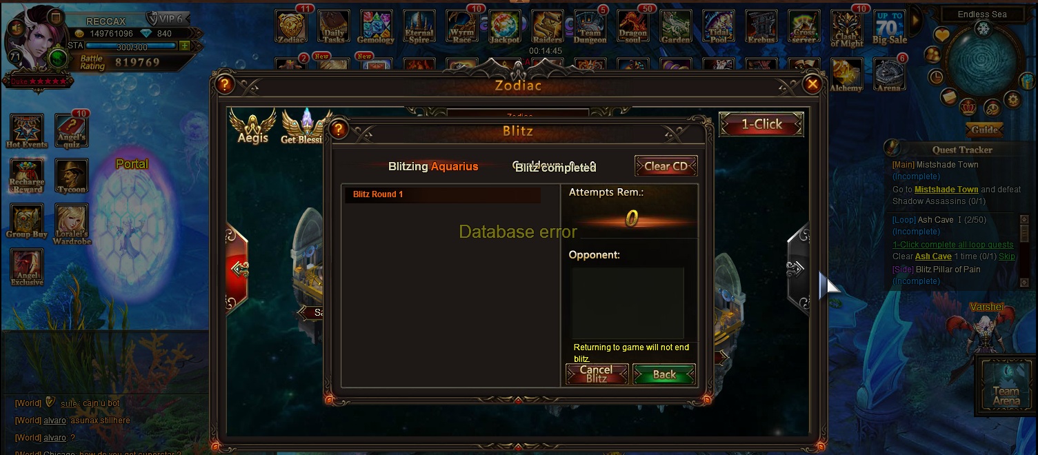 Zodiac 1--click blitz bug/ Database Error