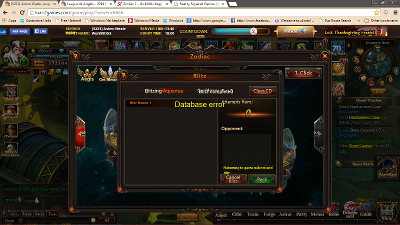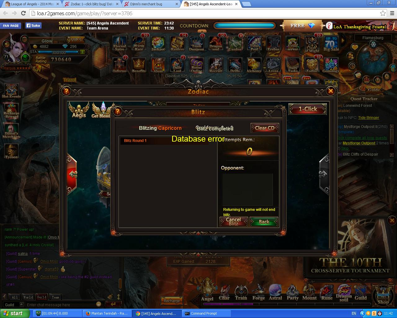good day, I come here again report a bug, related to blitz zodiac, occurred again database error.