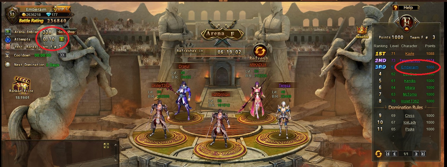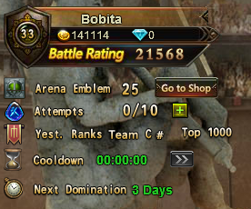 I think at the reset we all get 1000 points and i got that rank reward lol not the rank 1 from yesterday (u can check i assume) i did have arena attempts that worked just a wrong rank reward. Pls fix. I play at Loa.r2games, server 202 Warlord's Haven, game name Legolas