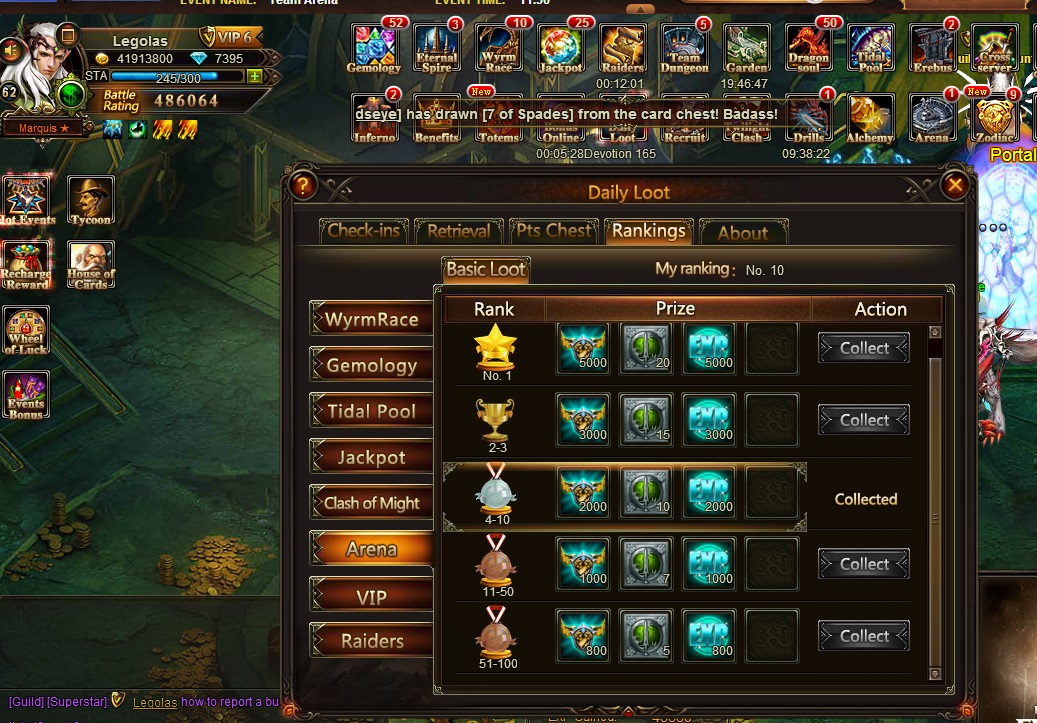 IT states here i was ranked 10!!! when in fact i was first yesterday. I was second in yesterdays domination and in arena i had around 1800 points, By far the most.
