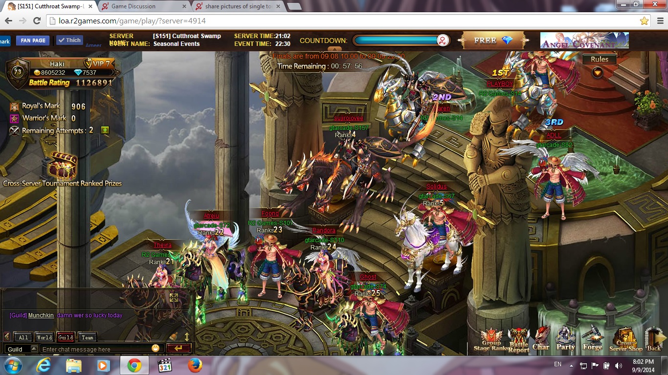 I wondered why there was no burning in our tournament, thought he quit after spendin a fortuneOriginally posted by Marie548 View Posti think they divided the server to prevent over powered player get all stuffs....