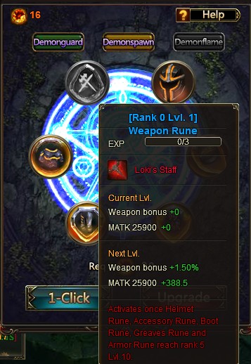 I have a lvl 74 Sorcerer. When I try to add more runes I get a series of messages that it returns the runestones. I should be able to start updating the weapon rune but it just sits there and I've gone through thousands of runestones. How do I make progress?Click image for larger version