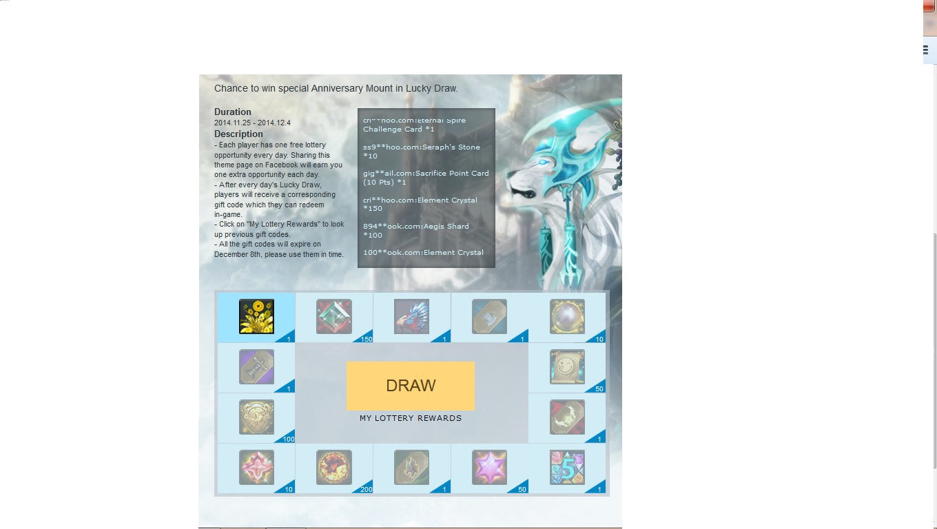 - After every day's Lucky Draw, players will receive a corresponding gift code which they can redeem in-game.