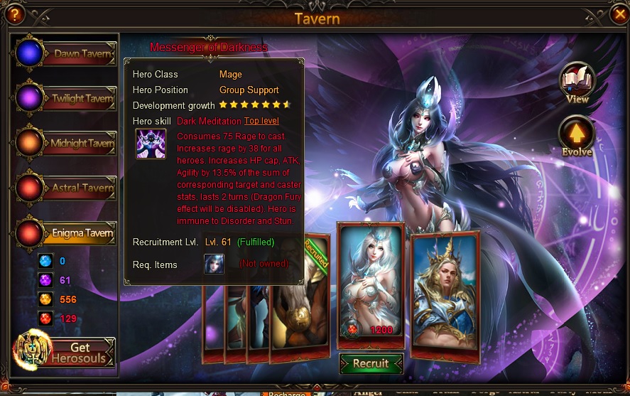 if you look better at the taverna recruit /evolve you will see that you should be able to recruit the evolved hero but you cant