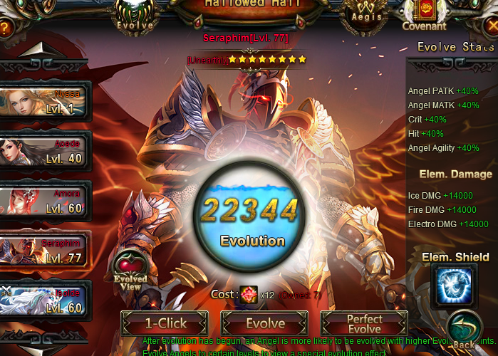 Some people can evolve it using very less seraphs, while others use the max amount.