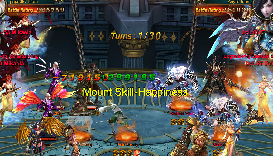 or a lv 70 + lv 30 + a lv 30 = 130 ...no comment, multi or any awaken aoe skill can wipe the opposite team if they play 49-49-49