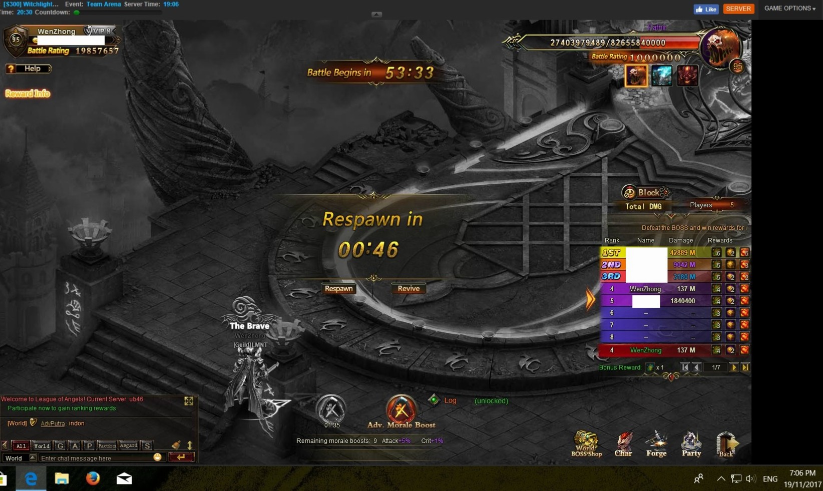 why when it is not yet wb, i didn't see the join wb button pop out from the bottom right hand corner and at the daily task window , when i refresh at 19:04 server time, i saw i have 12 attempts in the event bonus at server time 19:04, and it also says i participated in wb and ranked