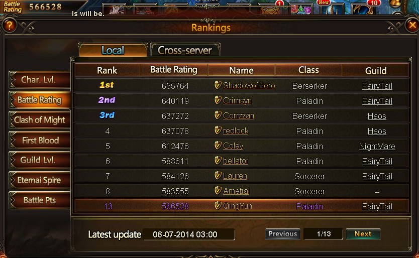 I saw some of you posts and i have to admit you know your way around but still you should kick it down a notch since most of your outstanding progress is because of that rage witch some of us know how you obtain... And also stop it with your titles like "look at what br i do this and that" br is just a number, it's about where you invest your progress... for example if i make my mount to +15 from 14 i'll invest 700 bless stones and get 800 br and if i invest 700 bless stones in a hero from +0 i'll get him to +6 and receive 5k br...Originally posted by qingyunjian View PostI wonder