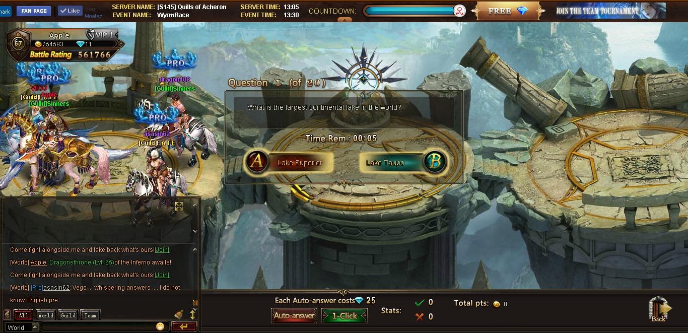 lmao.. u got a lot.. in our server 5-8 max player doing WB.. in TC, guilds going on finals has the only one with members fighting sometimes 3vs5 players.. no one play gauntlet anymore cuz its boring.. if u miss the first round of TA ull be sure you wont have a party in the second round anymore.. finding party in TD, inferno, TA is like looking for a needle on a haystack dafo0k.. a GM visits the world chat and nobody even bothers to reply to him.. lol.. hes just like talking to himself.. specially now that a new character is available everyone going to new server to try it out.. well its a proven fact making new servers every time earns way more..