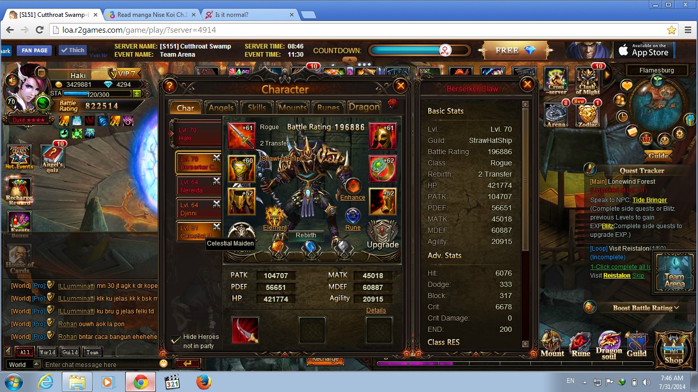 here are my main stats, 3 other hero are weak - 2 buff with 60k+ BR and Nereida 90k+ BR