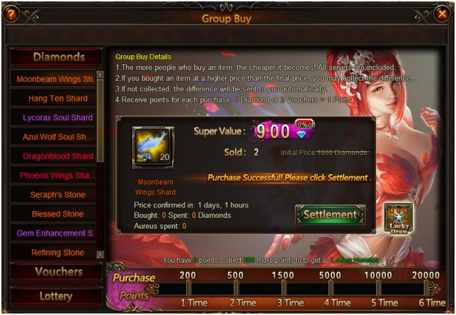 1. Group Buy points are rewarded to players every time they make a successful purchase. These points can be used in the lottery.
