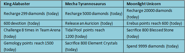 Description: Take your favorite Mount into battle with you! In this Mount Exclusive there are 3 amazingly powerful Mounts: King Alabaster, Mecha Tyrannosaurus and Moonlight Unicorn! Which Mount do you want to join your world? Choose one mount and complete the tasks to claim it!