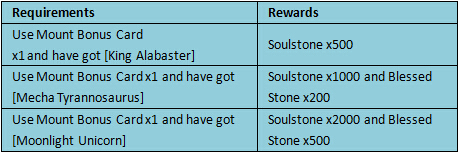 Note: The bonus card can only be used after you obtain a mount from the Mount Exclusive event.